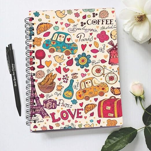 AccuPrints wiro bound A5 (6 by 9 inch) wiro Notebook Diary Ruled 200 pages-80 Gsm Paper Pattern-I Can I will