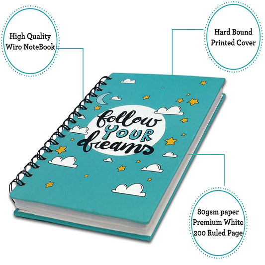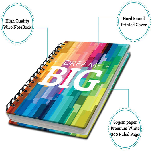 AccuPrints Hard bound A5 (6 by 9 inch) wiro Notebook Diary Ruled 200 pages